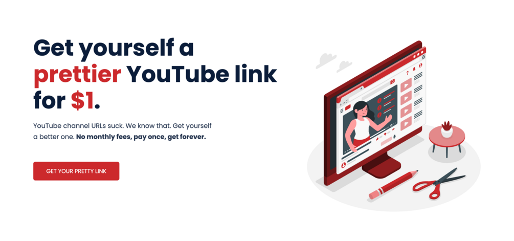 Get yourself a prettier YouTube link for $1. Pay once, get it forever.